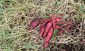 全体的に細く、“人参芋”はやはり形が悪いです。“ほし黄金”はこの畑では育っていました。