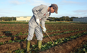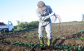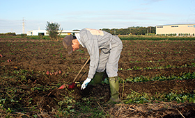 この畑では、“紅はるか”と“ほし黄金”を栽培しています。どちらも大きさは今一つです。