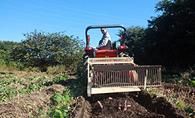 つるが絡まったり、切れないつるが、芋と一緒に掘り取り機に残ってしまうので、時折整備が必要でした。