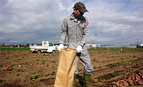 今年は掘り取り機で取り切れないつるが多く、手作業で芋と切り離すのですが、つる離れは簡単でした。これは品質が良い傾向の現れです。